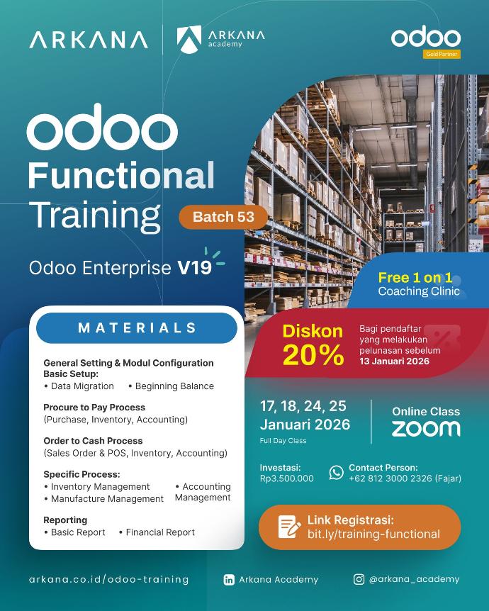 Training functional diperuntukkan bagi semua kalangan, baik itu mahasiswa, karyawan ataupun bisnis owner yang ingin mempelajari lebih dalam tentang fitur-fitur pada Odoo ERP.