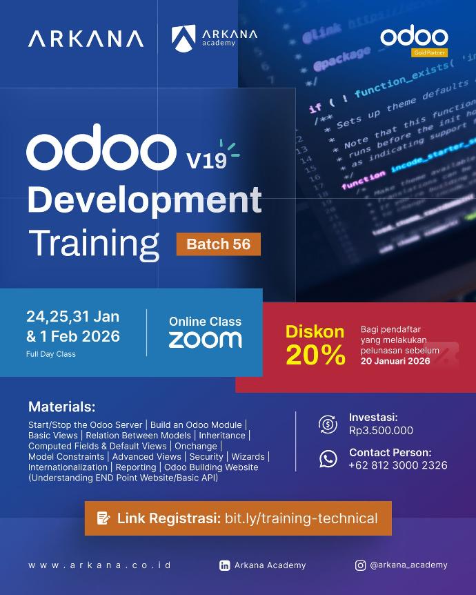 Training Development akan berfokus pada pengembangan Odoo serta memahami pengetahuan untuk menyesuaikan dan mengembangkan ide baru ke dalam platform ERP Odoo.